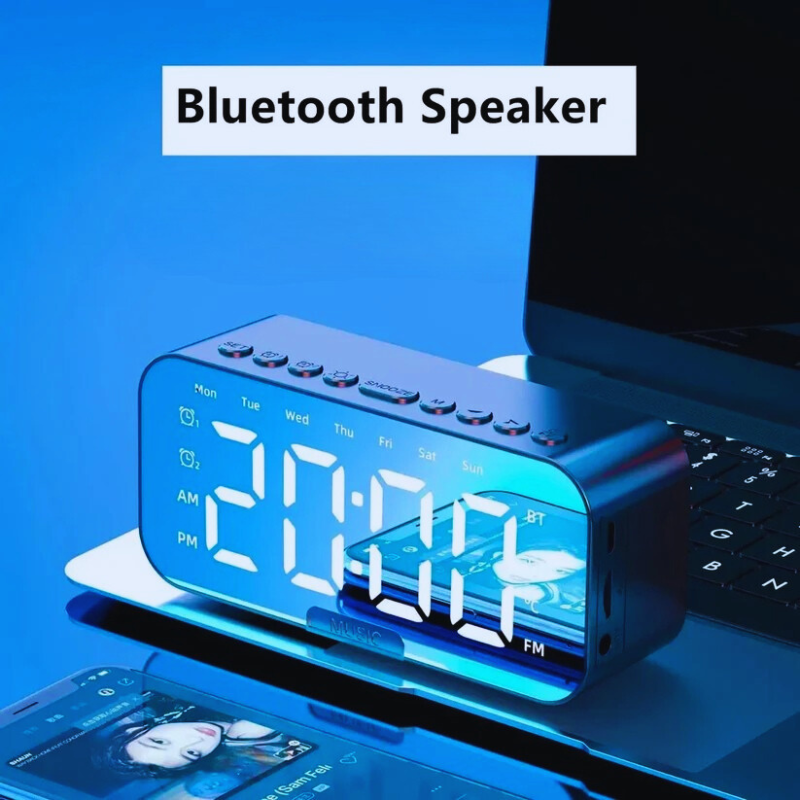 Combining functionality with modern design, this LED Digital Alarm Clock does more than just tell the time. It features a built-in Bluetooth 5.0 speaker for wireless music streaming, FM radio, weekly calendar display, and temperature readout—all presented on a sleek mirrored screen. Whether you're waking up or winding down, this smart clock is a stylish and practical addition to your space.