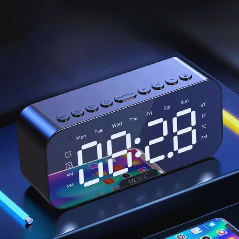 LED Digital Alarm Clock with Bluetooth Speaker, FM Radio & Mirror Display – Multi-Function Smart Clock