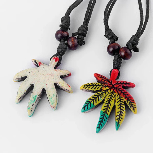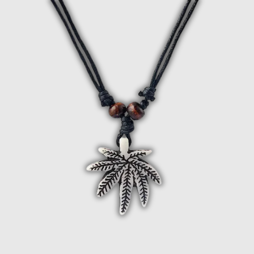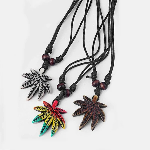 This resin maple leaf necklace features a white and brown rasta-style design, paired with an adjustable black wax cotton cord for a comfortable fit. Perfect for adding a casual, earthy vibe to any outfit.