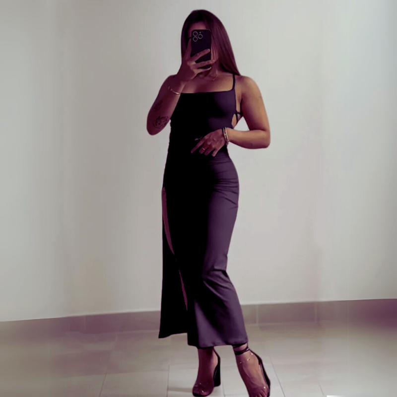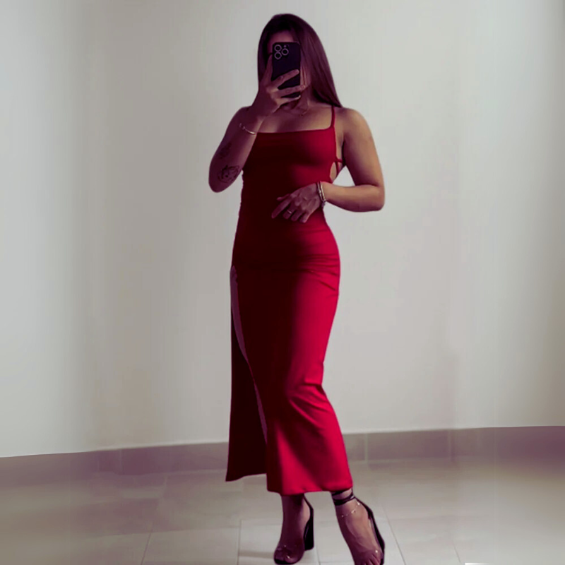 Unleash your inner Spice Girl with this high-sensibility halter strap sheath dress from Luxeuria. Crafted from a breathable polyester-spandex blend, this sleek ankle-length dress hugs your curves in all the right places. The spaghetti strap and slash neckline give it a flirty edge, while the solid color design keeps it versatile for styling. Ideal for summer nights, streetwear styling, or making a bold statement at your next party.