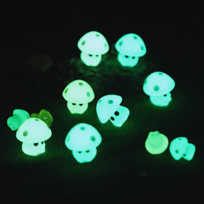 Add a magical glow to your DIY crafts and fairy gardens with this set of 5 to 20 miniature luminous mushrooms. Made from durable resin, these glowing fungi are perfect for microlandscape projects, dollhouses, plant pots, cake toppers, or any creative scene that needs a dreamy touch. Their compact size and whimsical design make them a charming addition to terrariums or desktop decorations. Just charge them with light, and enjoy the gentle glow after dark.