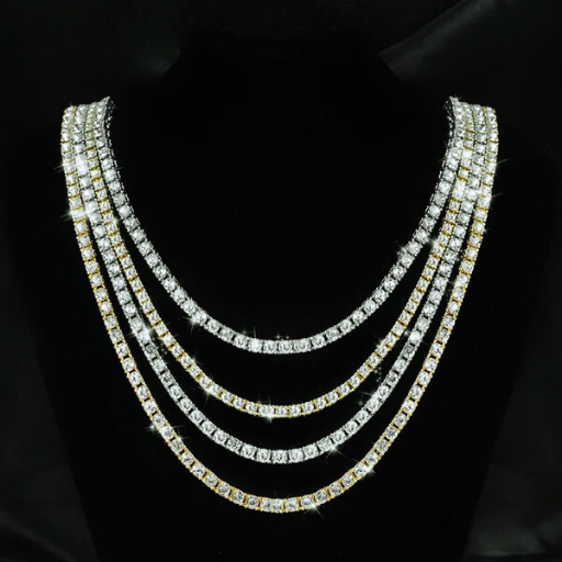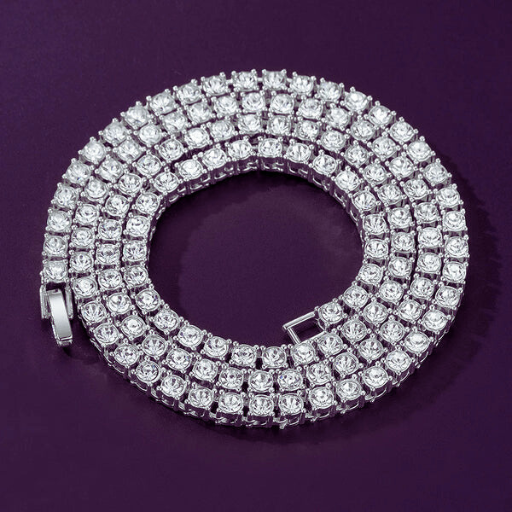 This classic 4mm tennis chain necklace delivers serious shine and swagger. Available in multiple lengths, it’s a favorite among hip hop jewelry fans for its versatility and iced-out style. Perfect for parties, gifting, or making a fashion statement.