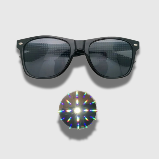 Add a mind-blowing twist to your festival look with these Diffractive Optical Sunglasses. Designed for parties, raves, and light shows, these special-effect shades transform ordinary lights into trippy visuals with star, heart, dollar, and football patterns. Made with lightweight polycarbonate frames and UV400 lenses, they’re as protective as they are stylish. A perfect conversation starter and a unique pick for anyone who loves to stand out!