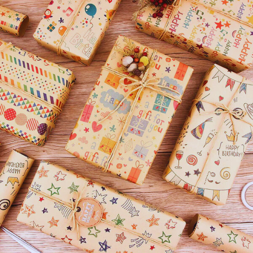 This durable kraft paper wrapping sheet is specially designed for birthdays and celebrations. Its thick texture ensures sturdy wrapping, while the subtle and elegant design adds a unique handmade charm to any gift, making it stand out on the special day.