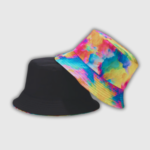 Add a pop of colour to your outfit with this Rainbow Print Bucket Hat. Designed with a vibrant tie-dye pattern, this hat is perfect for both men and women. Reversible and made from a durable blend of polyester and cotton, it provides sun protection and elevates your fashion game. Whether you're headed outdoors or just want to add a unique touch to your look, this casual bucket hat is a must-have accessory for any wardrobe.