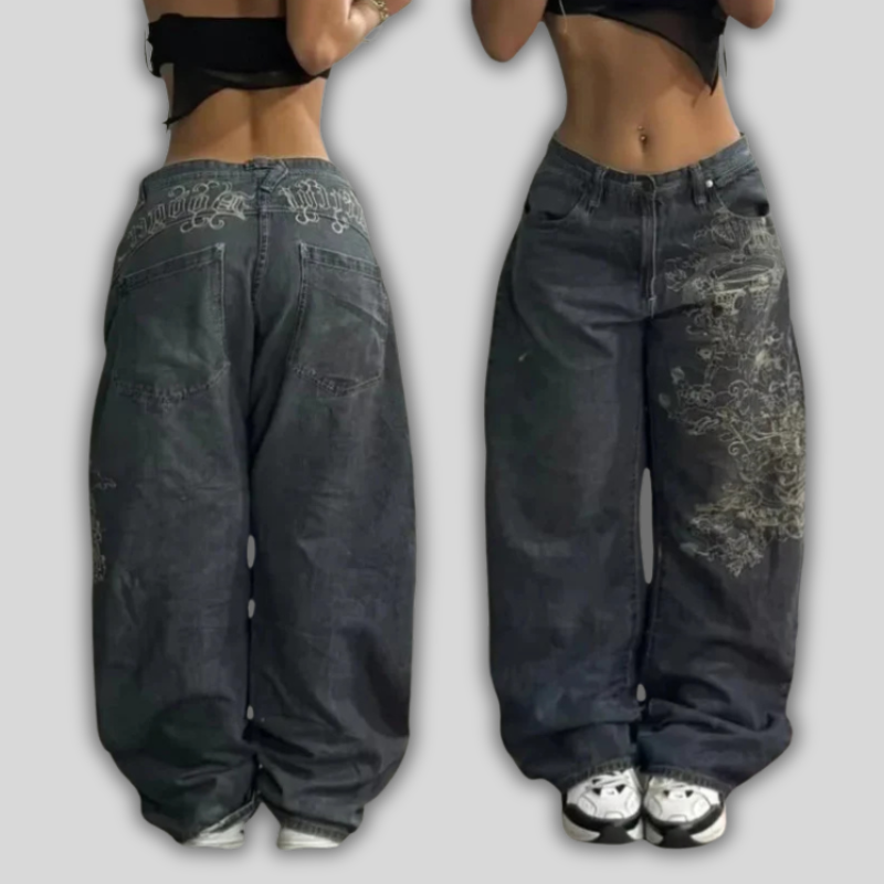 Urban Echo Y2K Embroidery Jeans – Harajuku Luxe Edition