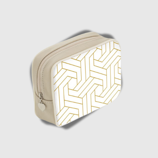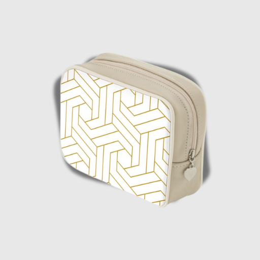 The Luxeuria Luxe Ivory Beige Makeup Bag combines elegance with everyday practicality. Its soft ivory beige trim is paired with a gold and white double-sided design, finished with a playful heart-shaped zipper. Choose from a glossy patent vinyl for a sleek modern look or genuine leather for timeless sophistication. Printed onto silky poly satin, this handmade-to-order bag is perfect for organising your makeup, skincare, or travel essentials in style.