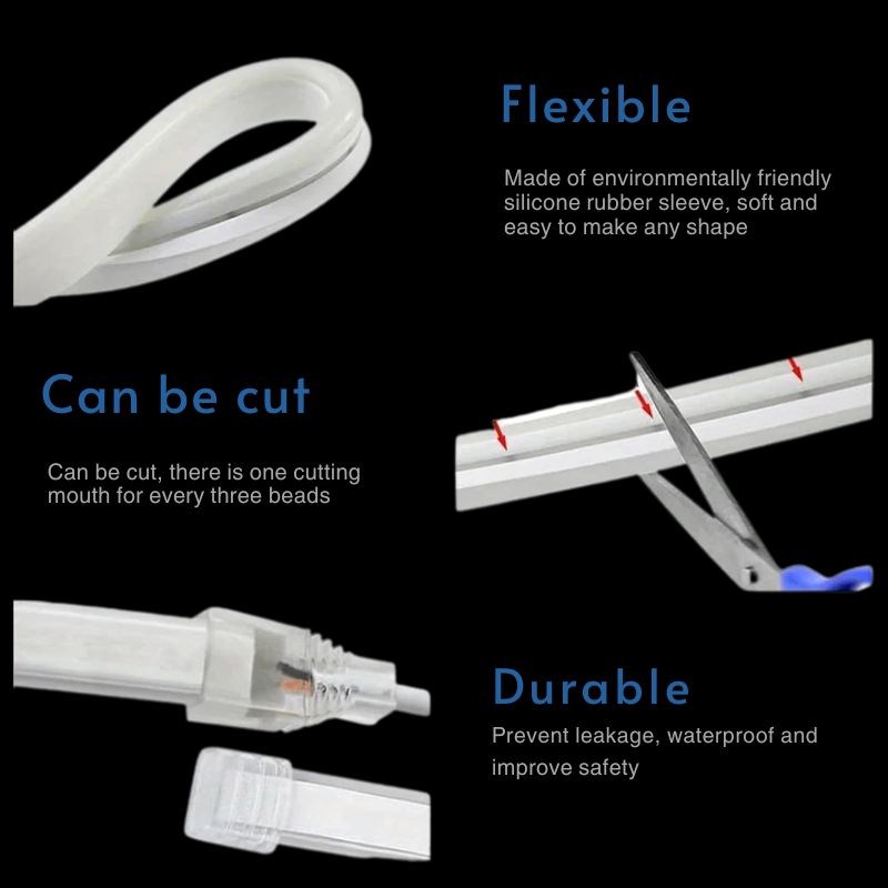 Features: Flexible, cuttable, dimmable, waterproof