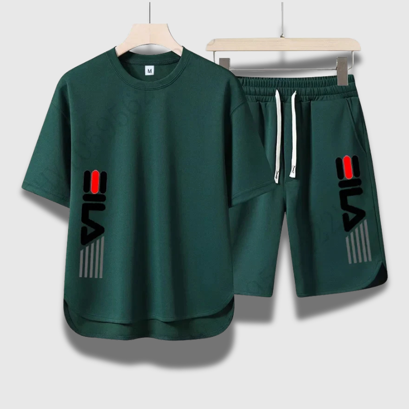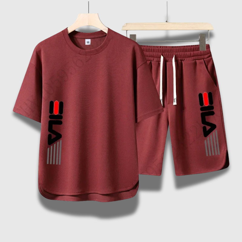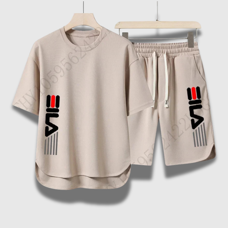 Men’s Summer Fashion Print Two-Piece Set – Casual Crewneck T-Shirt + Breathable Shorts
