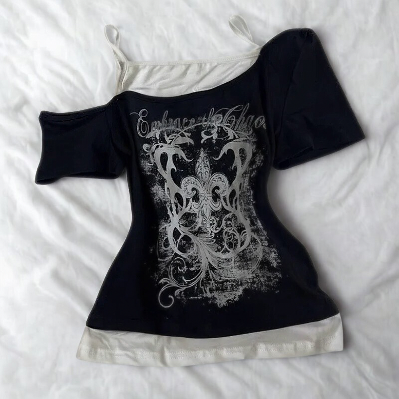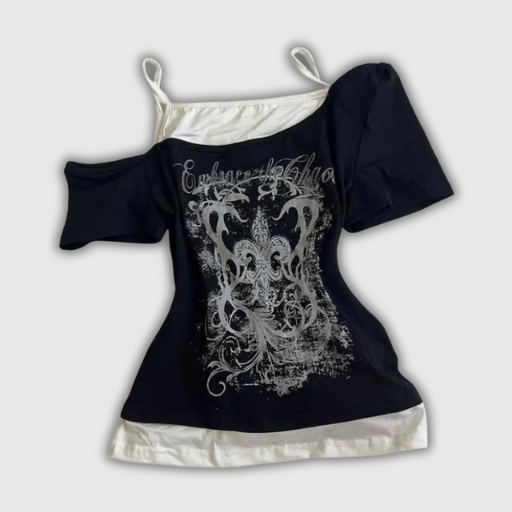 Grunge Y2K Off-Shoulder Crop Tee