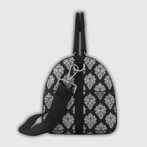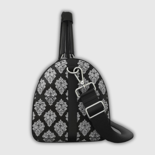 Travel in style with the Luxeuria Luxe Premium Nappa Leather Duffle Bag. Featuring the same sophisticated black leather adorned with elegant gray patterns printed on both sides, this designer duffle is crafted from 100% genuine Nappa leather. Nickel hardware and charcoal thread stitching add refined details, while the Luxeuria Luxe leather label inside signifies quality craftsmanship. The deluxe faux suede inner lining protects your belongings, complemented by double zips with leather pulls for smooth access. Available in small and large sizes, it also includes inner pockets for added convenience. Handmade by expert leatherworkers in London, this bag combines luxury with practical design.