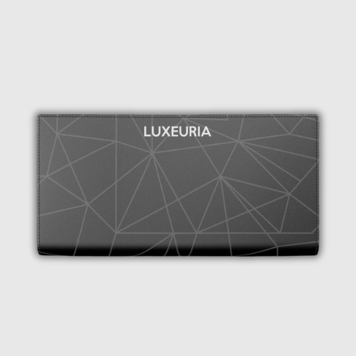 Luxeuria Luxe Women’s Black & Gray Geometric Nappa Leather Designer Travel Wallet – Press Stud Closure