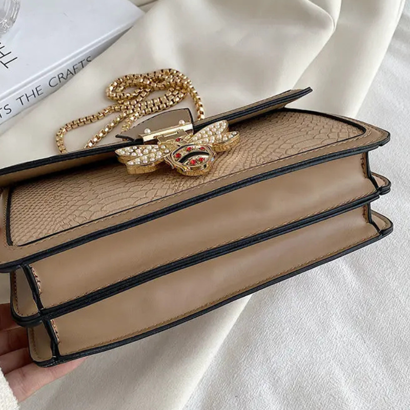 Luxeuria Luxe CrocCharm Bee Lock Leather Crossbody & Tote Bag