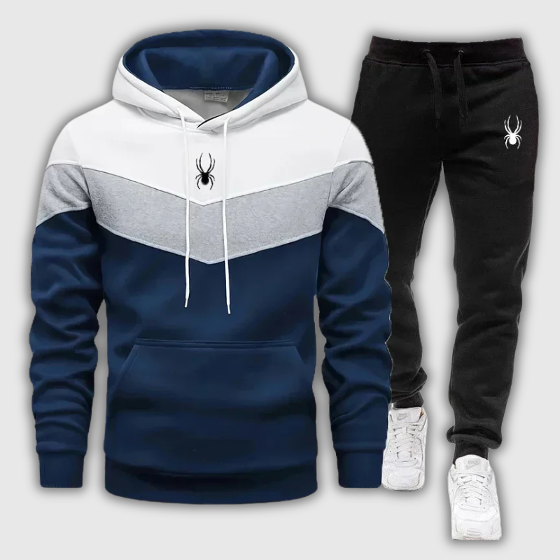 Men’s Tricolor Fleece Tracksuit — Patchwork Hoodie & Joggers Set
