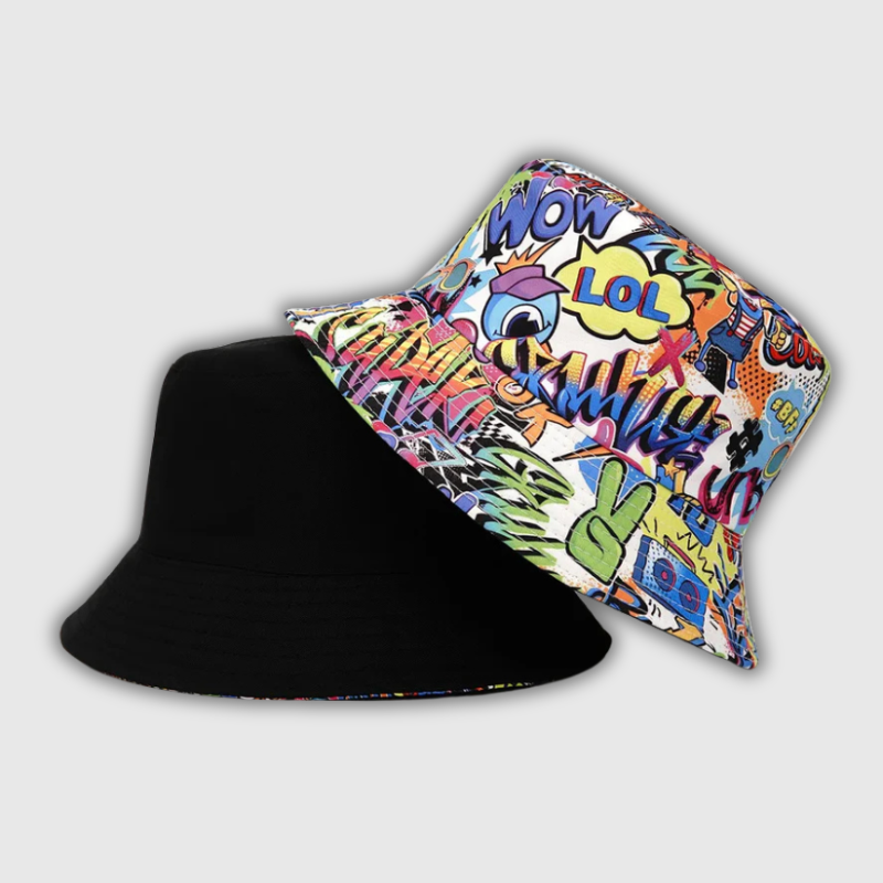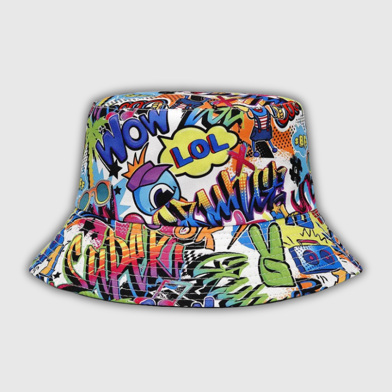 Unisex Graffiti Letter Print Bucket Hat – Sunscreen Streetwear Edition