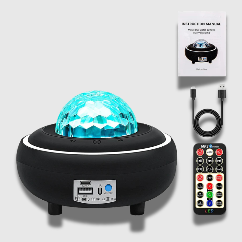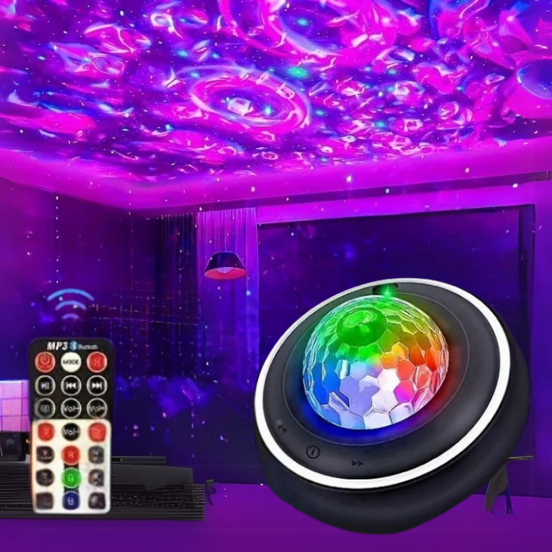 Elevate your space with the Diamond Starry Sky Bluetooth Projector. This multi-sensory LED light casts flowing water ripple patterns across your walls and ceiling, layered with dreamy starlight for an immersive vibe. It also features built-in Bluetooth music capability, letting you sync ambient visuals with your favorite tracks. Whether you're setting the tone for a chill night in, a party, or a relaxing bedtime ritual, this smart atmosphere projector transforms any room into a tranquil, futuristic escape.