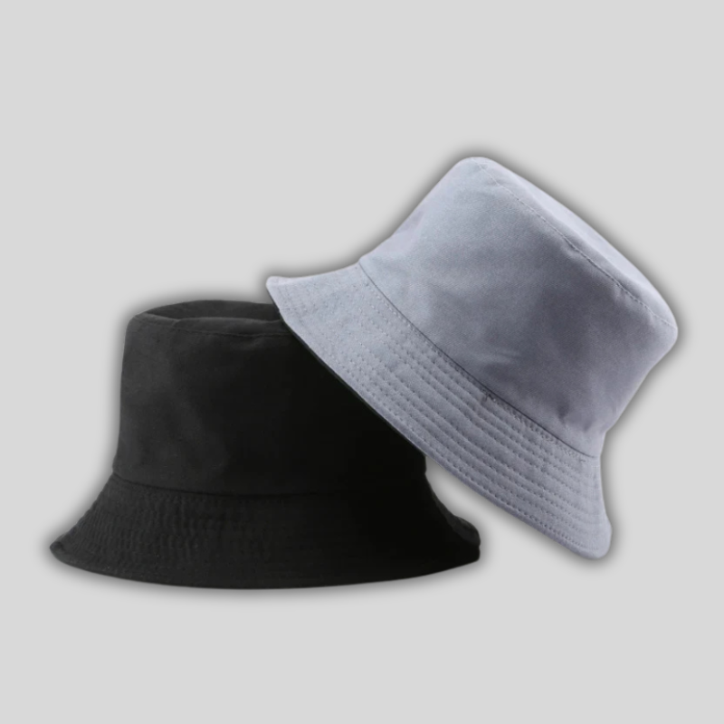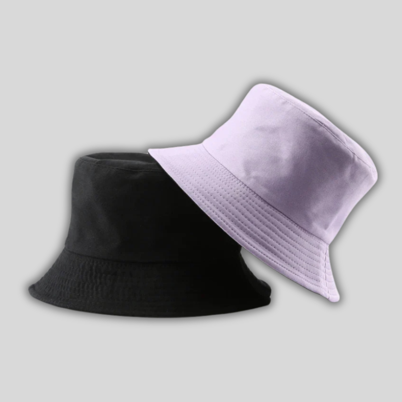 Solid Black Reversible Bucket Hat – Unisex Cotton Two-Side Casual Sun Hats
