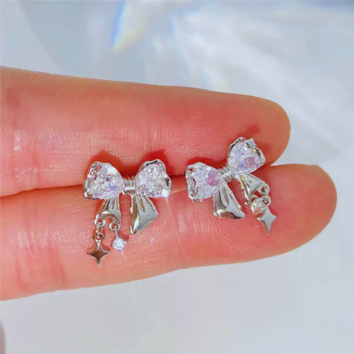These Korean-style bowknot earrings with pink zircon accents make a playful and trendy addition to your outfit. Lightweight and eye-catching, they’re the perfect mix of feminine and bold Y2K aesthetic.