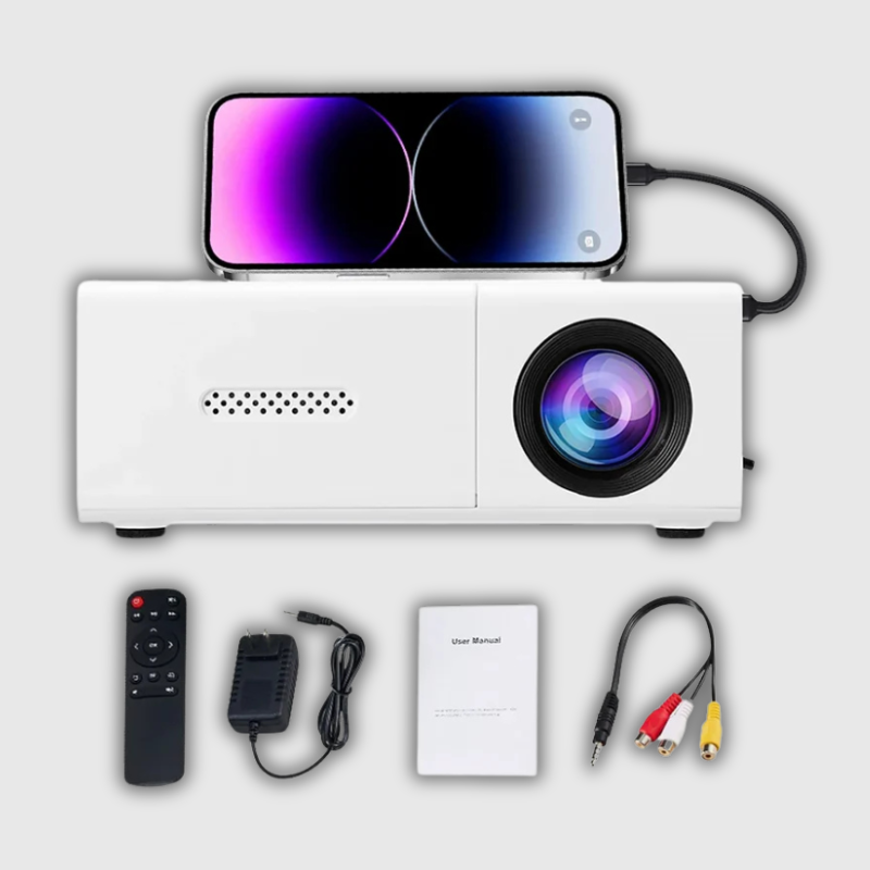 Transform any space into a cinema with the Portable Mini Projector, designed for high-definition viewing on the go. This compact LED projector is ideal for home theaters, outdoor camping, office meetings, or even birthday parties. Featuring a projection size of up to 60 inches and a convenient plug-and-play setup, it’s compatible with smartphones and comes with a remote control for effortless operation. Whether you're streaming movies indoors or projecting visuals outdoors, this lightweight and portable projector delivers big-screen fun anytime, anywhere.