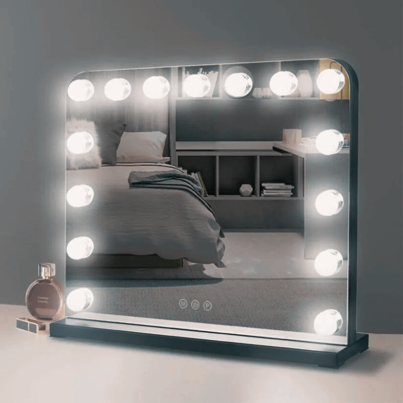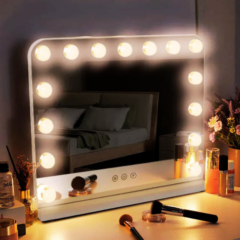 Get ready in style with the Luxeuria Luxe Rectangle Hollywood Vanity Mirror. Designed for both elegance and function, this mirror is equipped with 18 dimmable LED bulbs that offer three adjustable lighting modes: warm, warm white, and cool white. The sleek rectangular frame and wall-mounted setup help you save space while adding a touch of glamour to your beauty routine. With a plug-in power source and touch sensor controls, you can enjoy consistent, adjustable lighting whenever you need it.