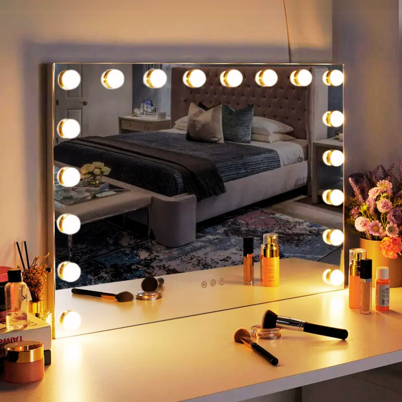 Luxeuria Luxe Wall-Mounted Rectangle Hollywood Vanity Mirror – 18 Dimmable LED Bulbs