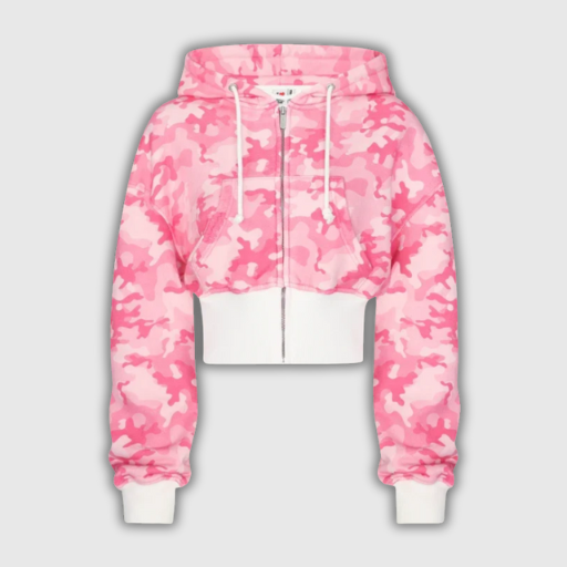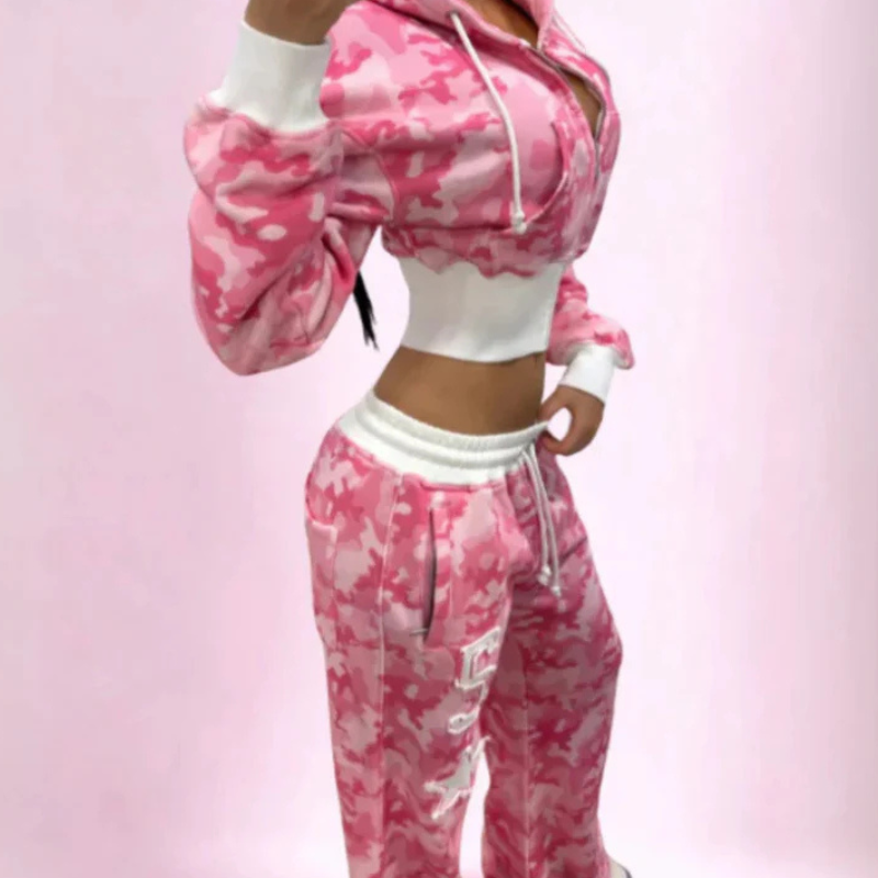 Y2K Pink Camouflage 1+2-Piece Set – Short Zip Hoodie and Sports Pants