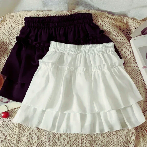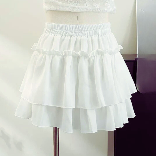 A soft chiffon mini skirt featuring ruffle detailing and an elastic high waist for an easy, flattering fit. Perfect for Y2K-inspired looks, summer outfits, or dressing up your basics.