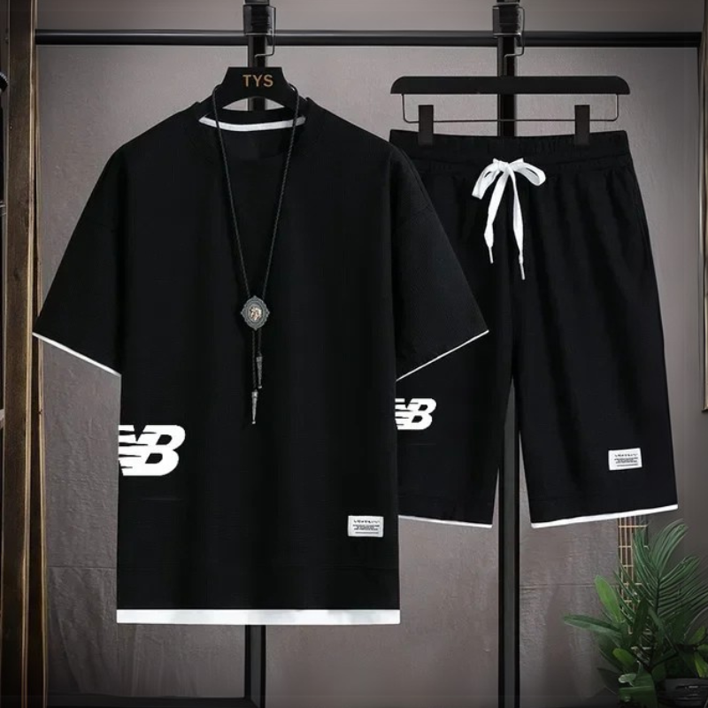 Men’s Summer Waffle T-Shirt & Shorts Set — Casual Sports Suit