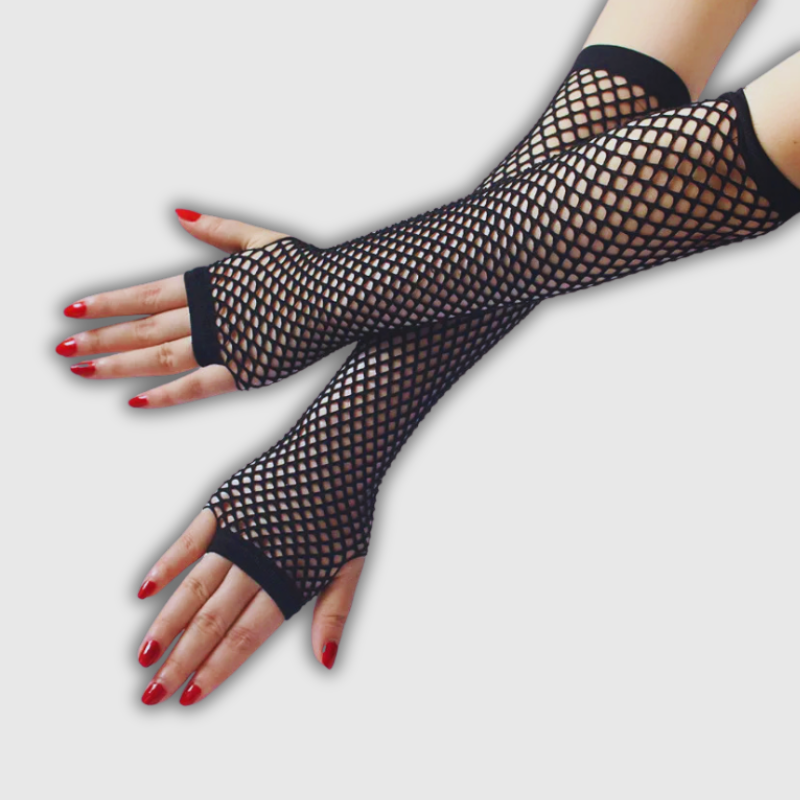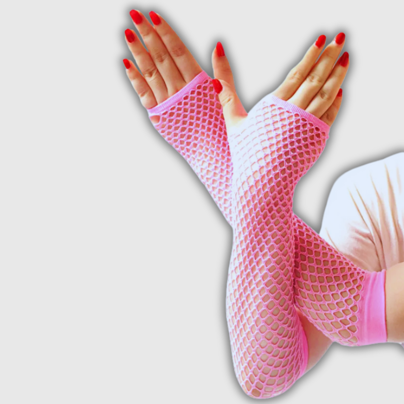 Women’s Neon Fishnet Fingerless Long Gloves – Sexy Plaid Arm Warmers