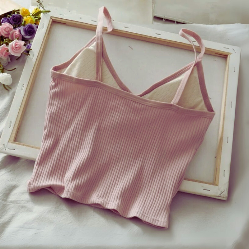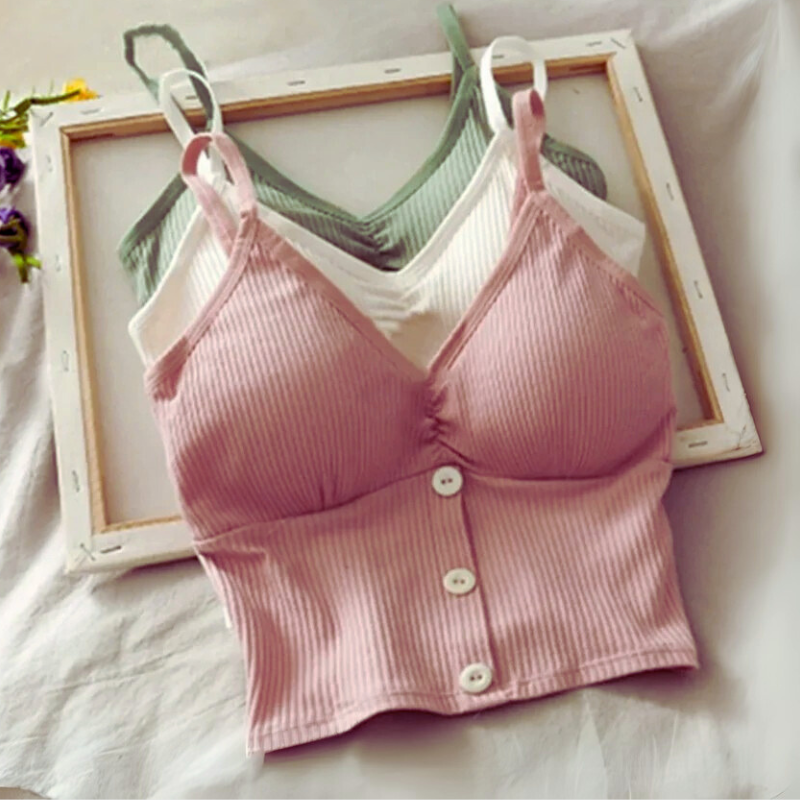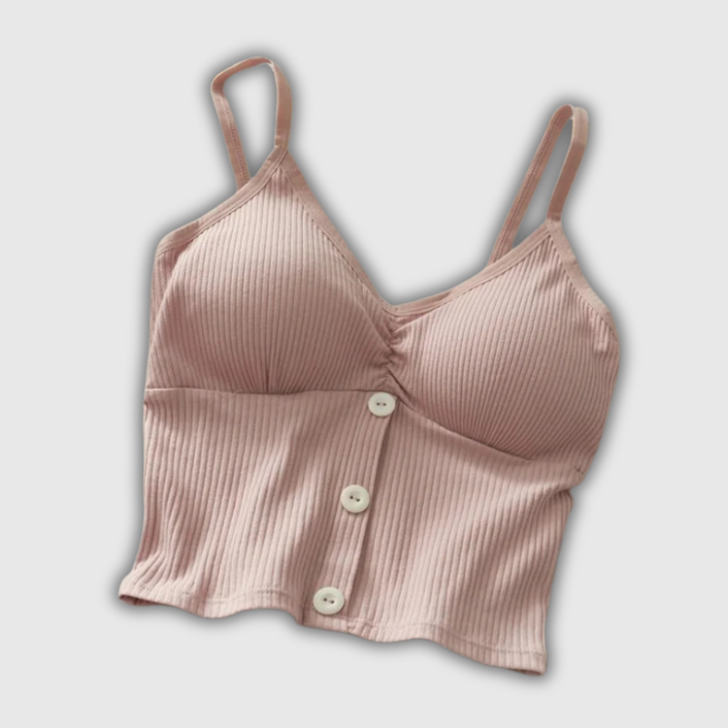 Knitted Strap Crop Camisole – Button Detail Cotton Blend Tank for Women