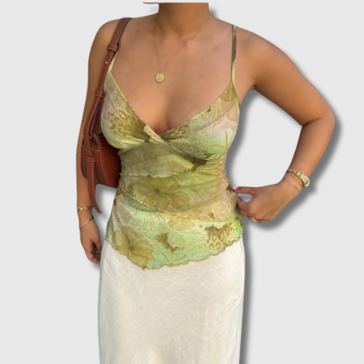 Women Summer Vintage Y2K Floral Mesh Spaghetti Strap Crop Tank