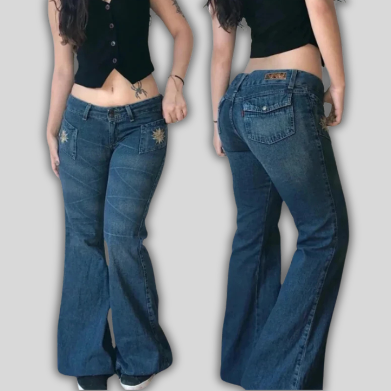 Retro Flared Patch Wide-Leg Jeans – Y2K Street Edition