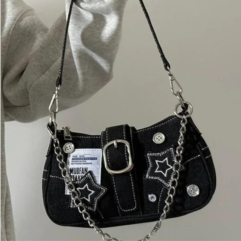 Embrace bold, eclectic style with the Luxeuria Luxe Patchwork Star Shoulder Handbag. Designed with a unique patchwork pattern and adorned with appliques, chains, and letter details, this casual yet statement-making handbag is perfect for every occasion. Featuring a soft feel, convenient interior pockets, and a secure zipper closure, it’s as practical as it is stylish.